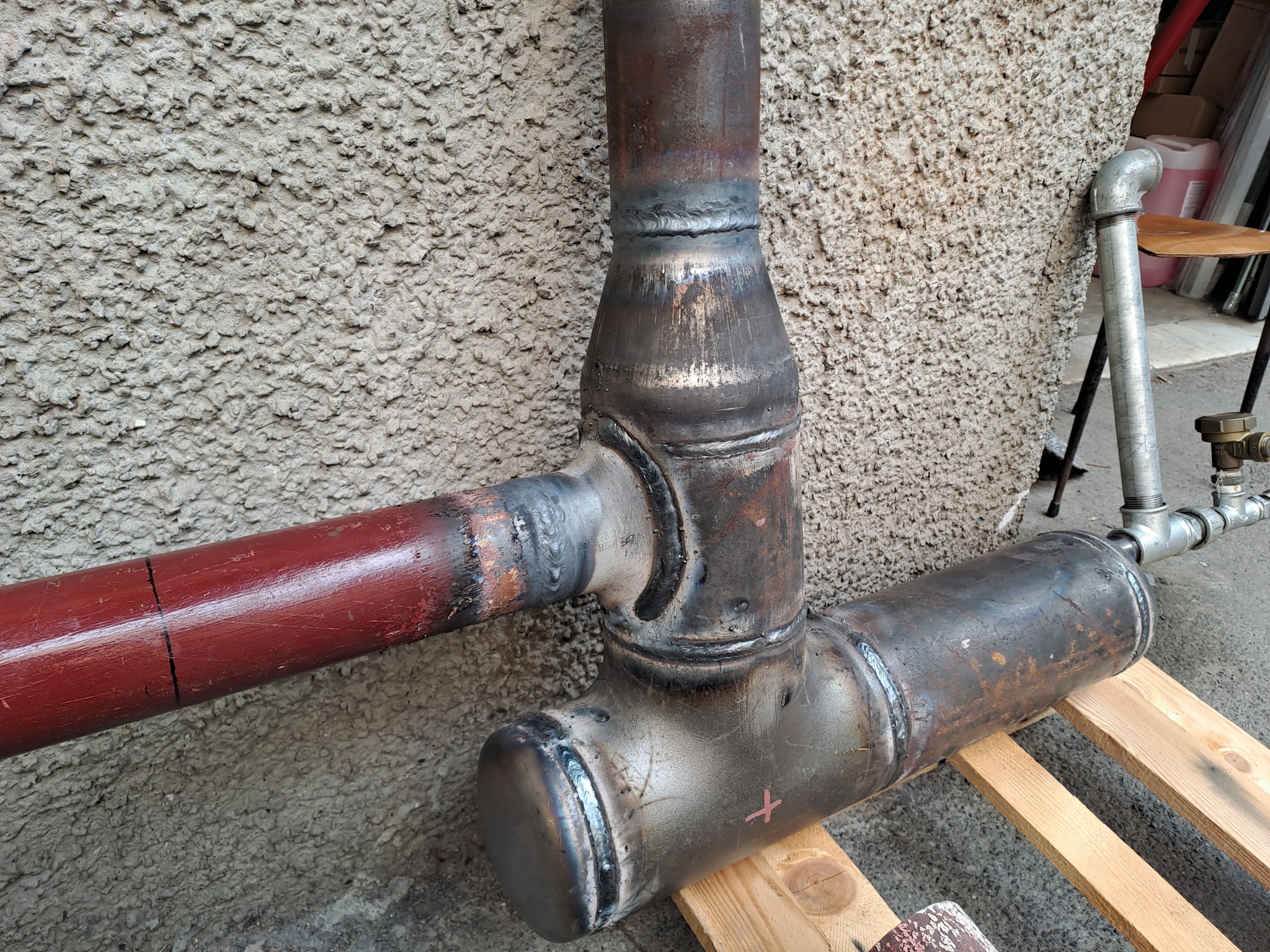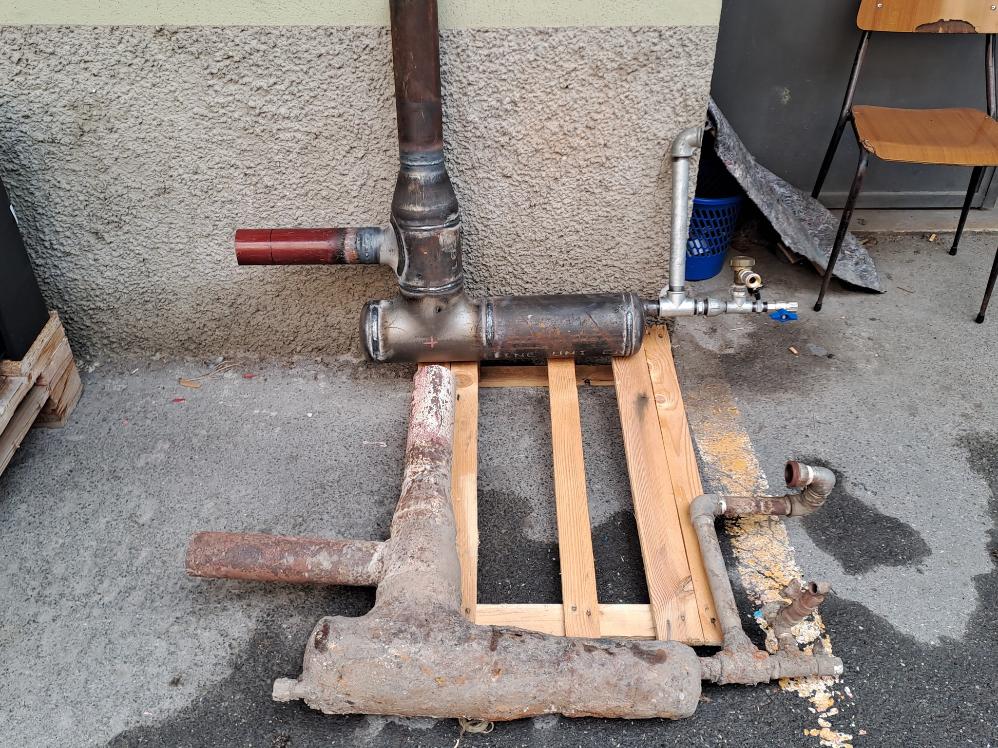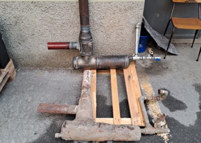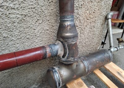 Il pezzo sostitutivo è stato ricostruito utilizzando materiale idoneo e sagomato secondo le misure rilevate. La saldatura è stata eseguita con procedimento a elettrodo per garantire resistenza meccanica e penetrazione adeguata, integrata con saldatura ossiacetilenica nelle zone dove si rendeva necessaria una maggiore precisione